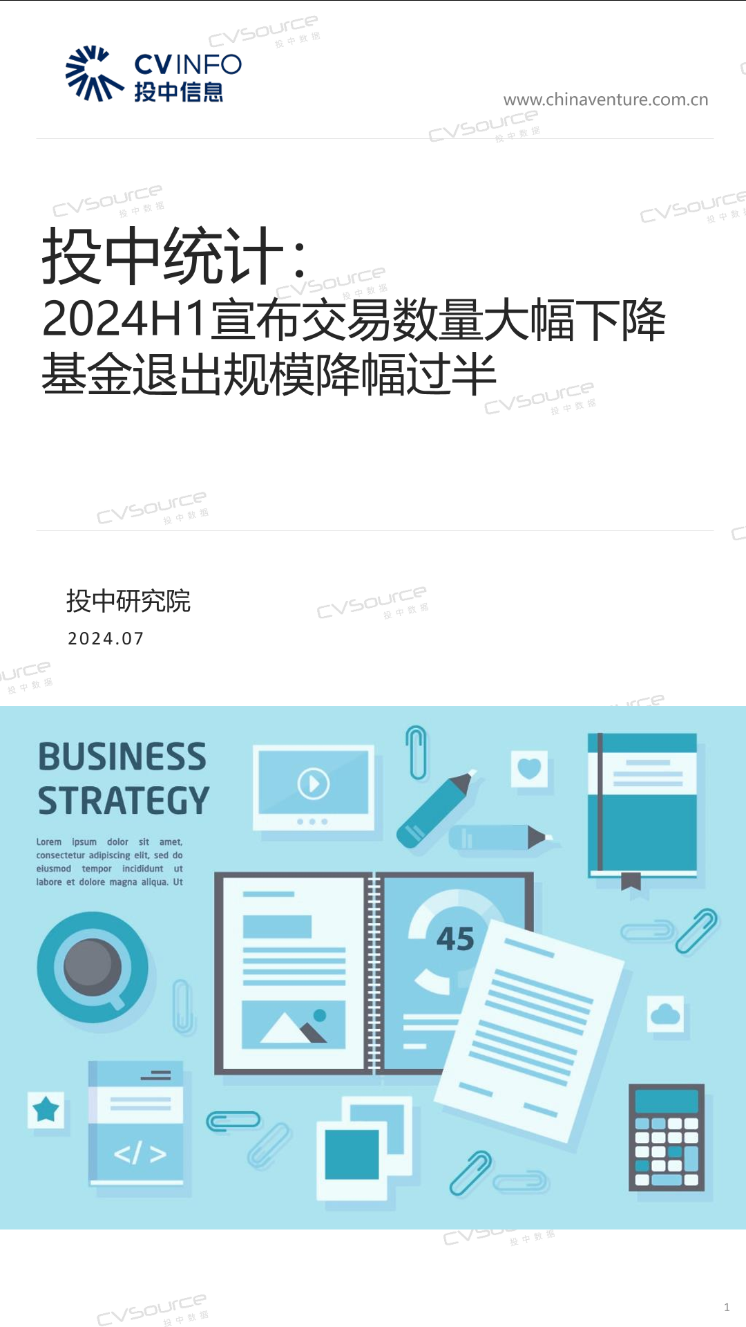 【投中研究院】【202407】2024H1宣布交易数量大幅下降 基金退出规模降幅过半-21页