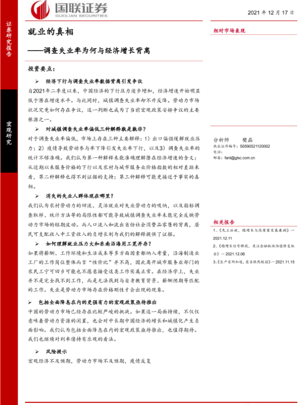 【国联证券】【20211217】调查失业率为何与经济增长背离:就业的真相-15页