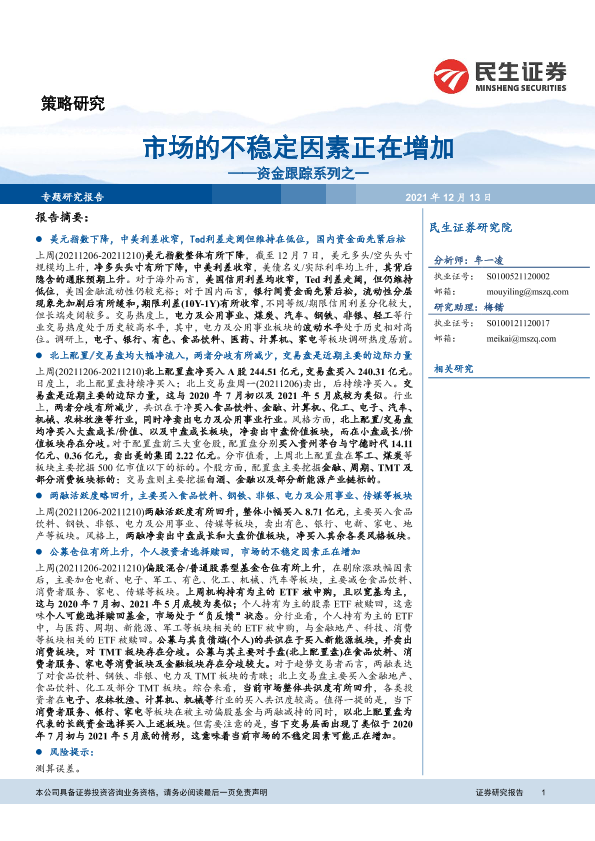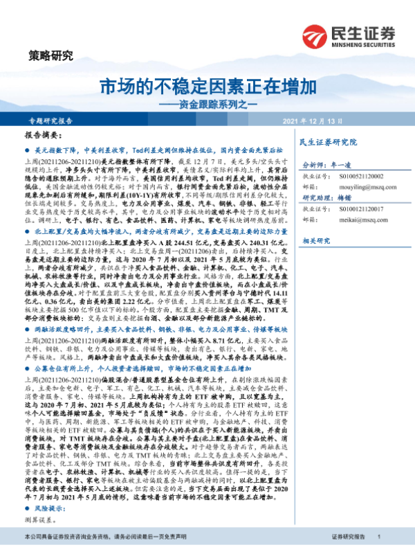 【民生证券】【20211213】市场的不稳定因素正在增加——资金跟踪系列之一-28页