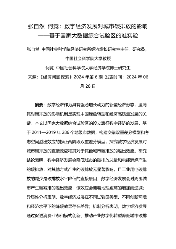 【张自然】【20240628】数字经济发展对城市碳排放的影响——基于国家大数据综合试验区的准实验-44页