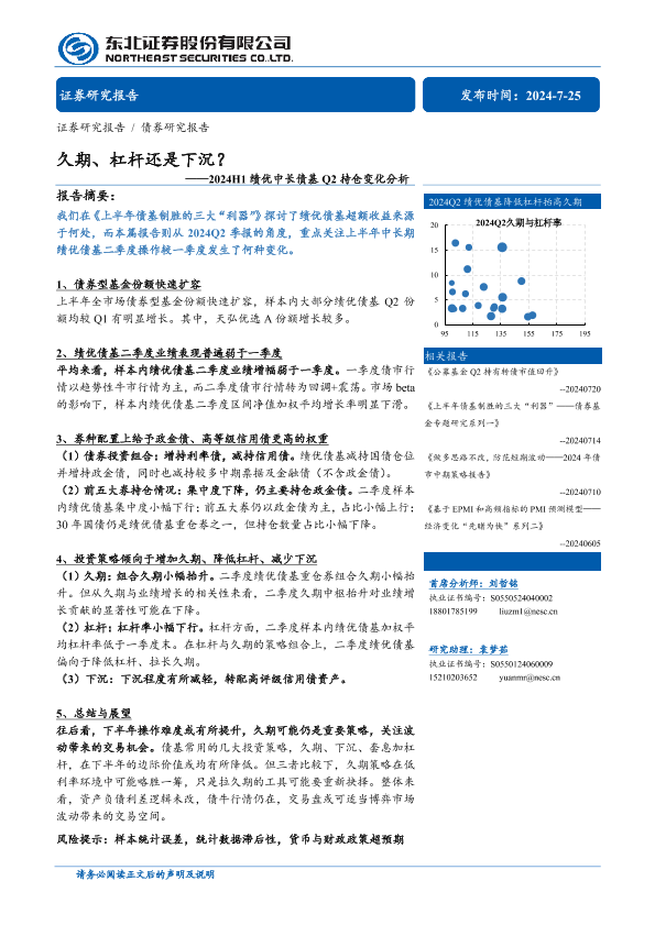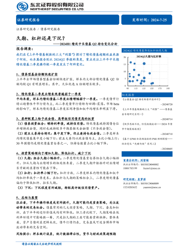【东北证券】【20240725】2024H1绩优中长债基Q2持仓变化分析:久期、杠杆还是下沉?-14页