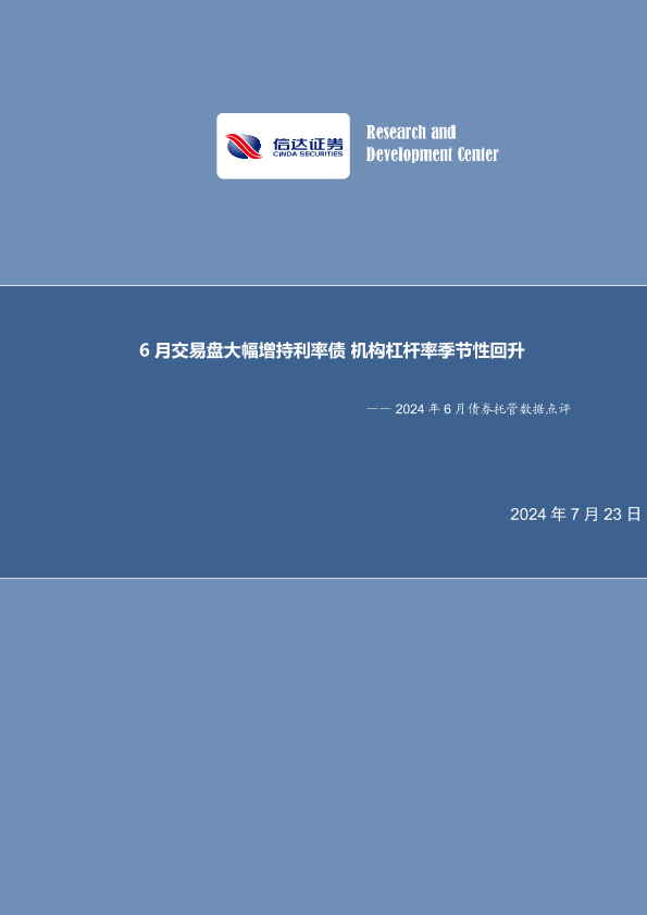 【信达证券】【20240723】2024年6月债券托管数据点评:6月交易盘大幅增持利率债,机构杠杆率季节性回升-11页