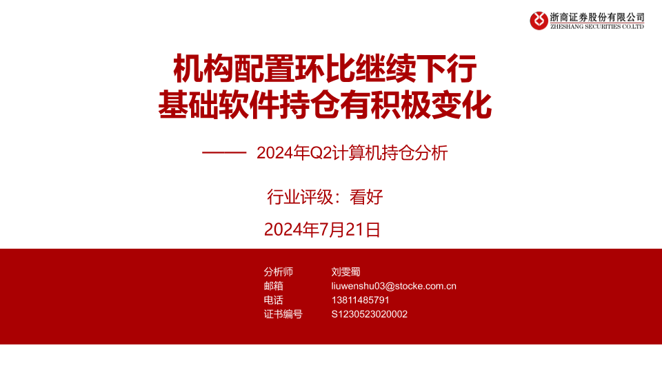 【浙商证券】【20240721】2024年Q2计算机持仓分析:机构配置环比继续下行,基础软件持仓有积极变化-11页