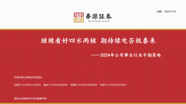 【华源证券】【20240724】2024年公用事业行业中期策略-40页
