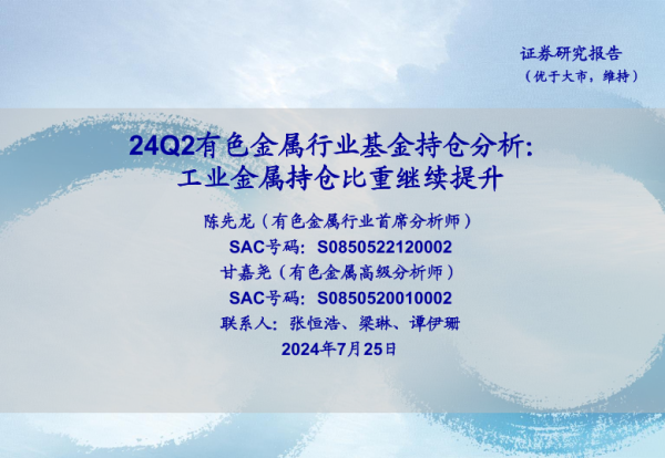 【海通证券】【20240725】24Q2有色金属行业基金持仓分析:工业金属持仓比重继续提升-14页