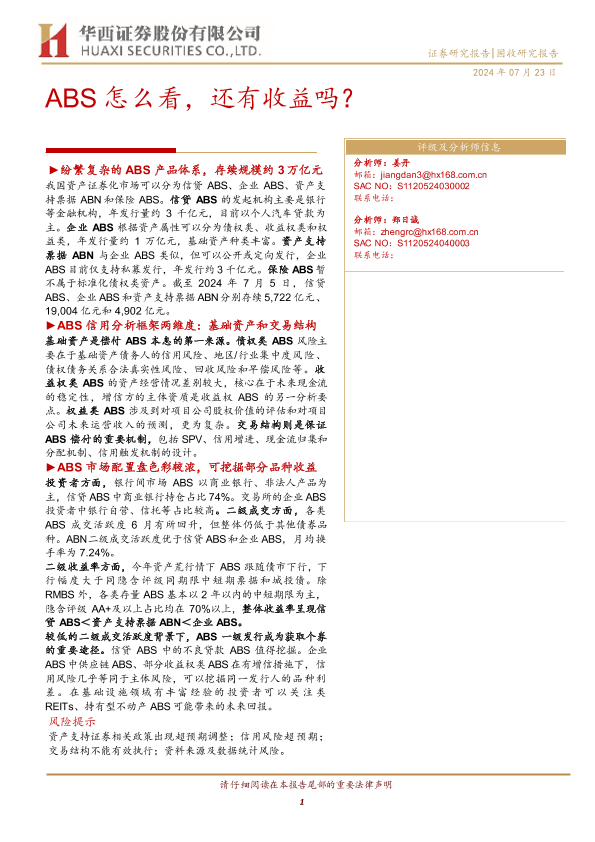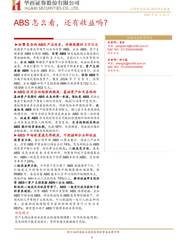 【华西证券】【20240723】ABS怎么看,还有收益吗?-33页