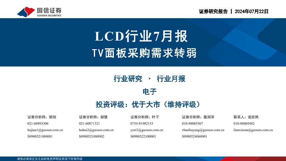 【国信证券】【20240722】LCD行业7月报:TV面板采购需求转弱-22页