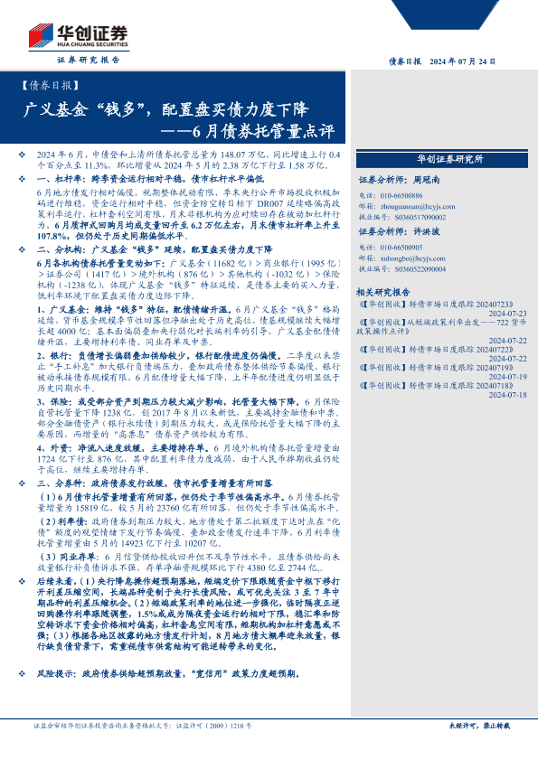 【华创证券】【20240724】6月债券托管量点评:广义基金“钱多”,配置盘买债力度下降-12页