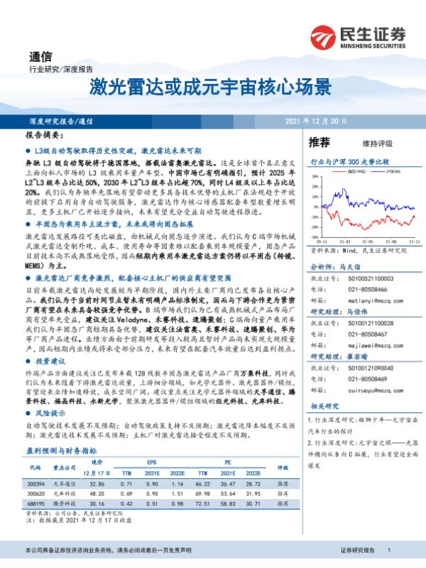 【民生证券】【20211220】通信行业深度报告:激光雷达或成元宇宙核心场景-32页