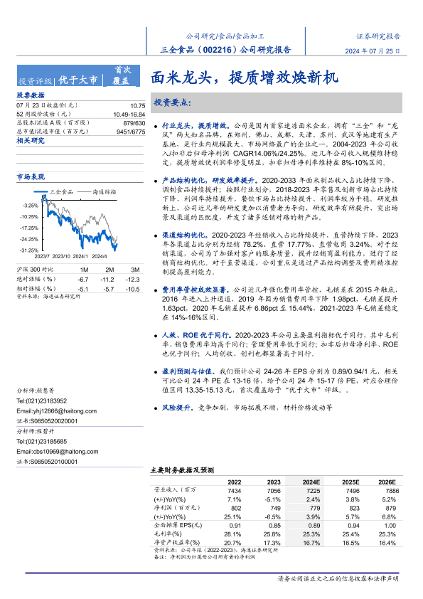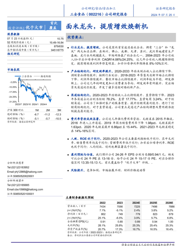 【海通证券】【20240725】三全食品(002216)公司研究报告:面米龙头,提质增效焕新机-15页