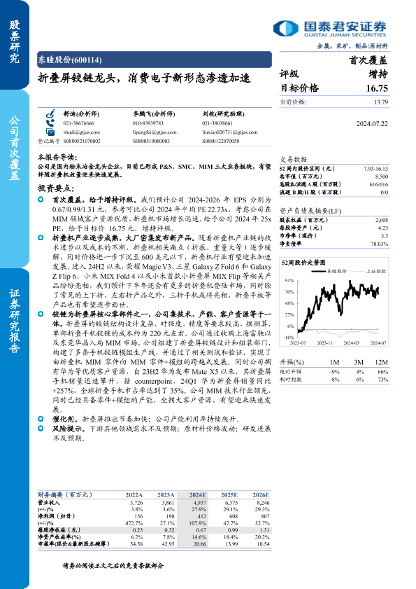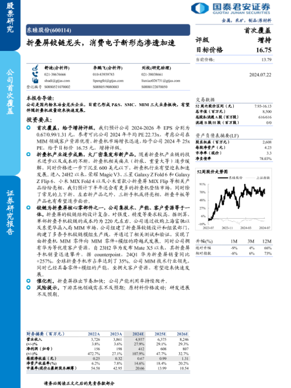 【国泰君安证券】【20240722】东睦股份(600114)折叠屏铰链龙头,消费电子新形态渗透加速-12页