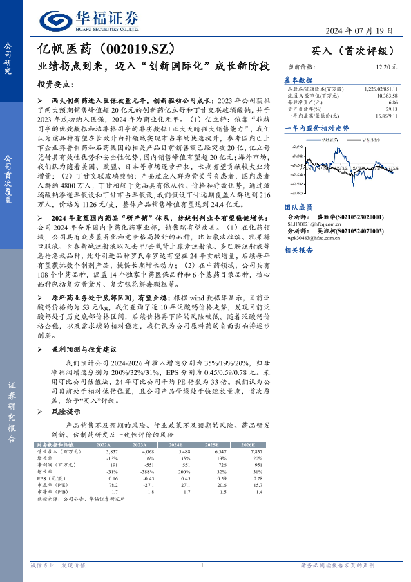 【华福证券】【20240719】亿帆医药(002019)业绩拐点到来,迈入“创新国际化”成长新阶段-25页