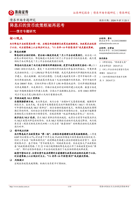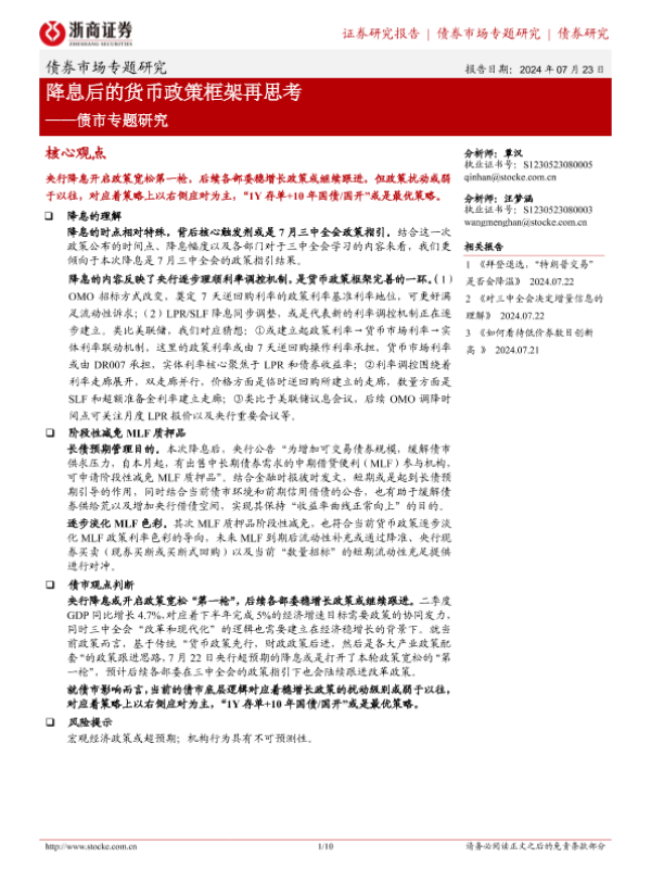 【浙商证券】【20240723】债市专题研究:降息后的货币政策框架再思考-10页