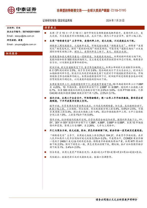 【中泰证券】【20240720】全球大类资产跟踪:非典型的特朗普交易-12页