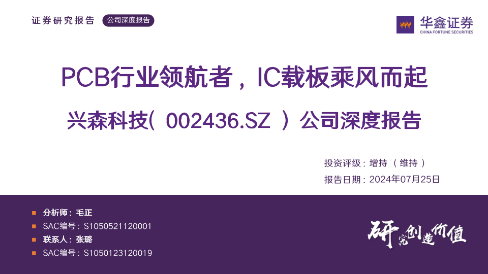 【华鑫证券】【20240725】兴森科技(002436)公司深度报告:PCB行业领航者,IC载板乘风而起-39页