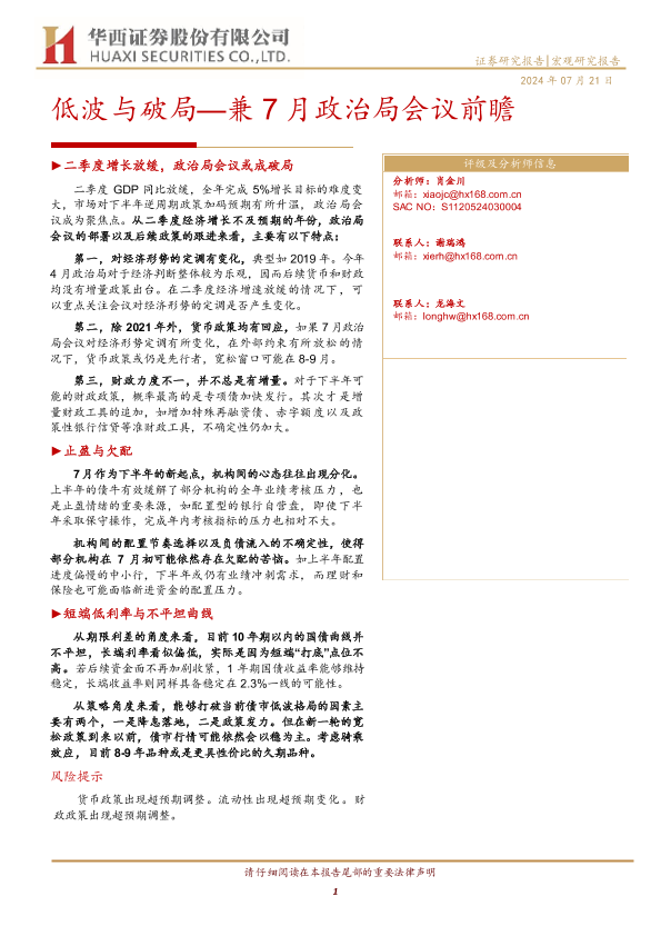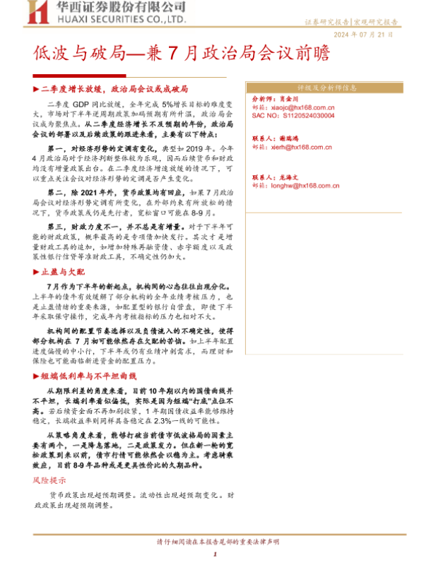 【华西证券】【20240721】低波与破局—兼7月政治局会议前瞻-22页