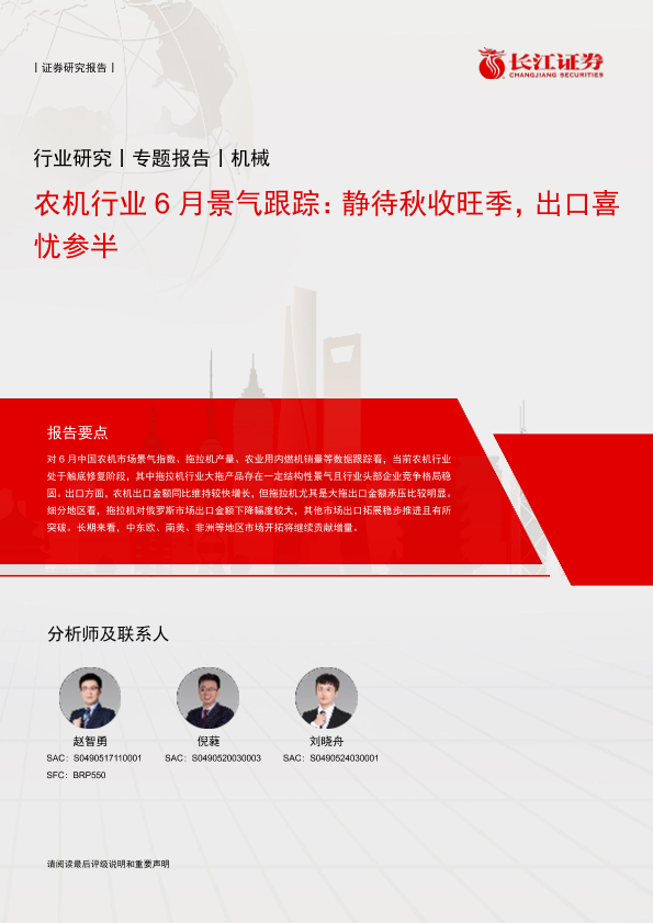 【长江证券】【20240723】农机行业6月景气跟踪:静待秋收旺季,出口喜忧参半-13页