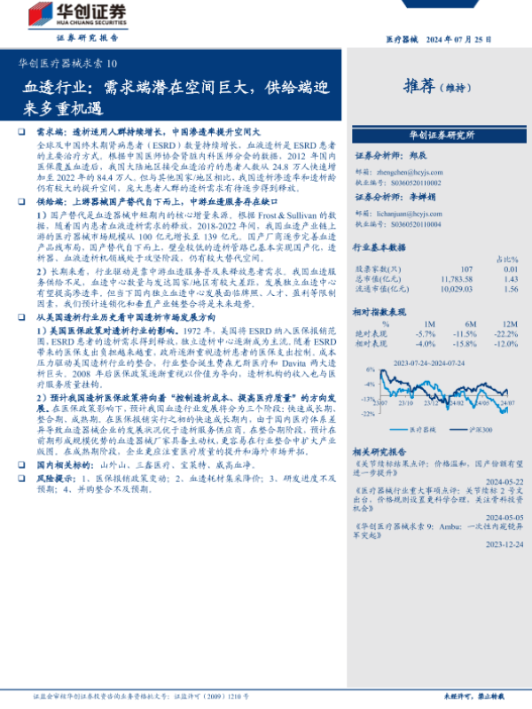 【华创证券】【20240725】华创医疗器械求索10-血透行业:需求端潜在空间巨大,供给端迎来多重机遇-35页