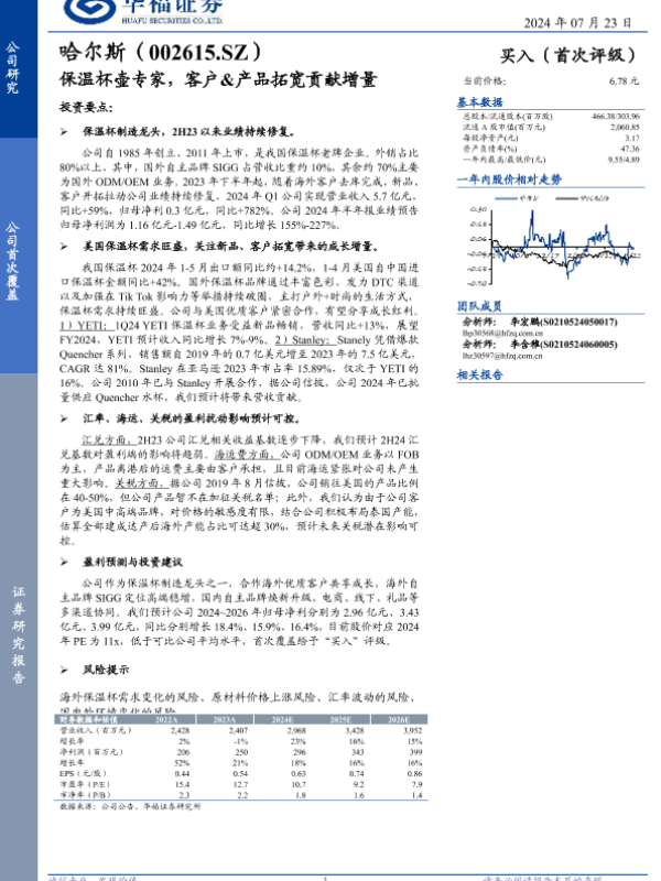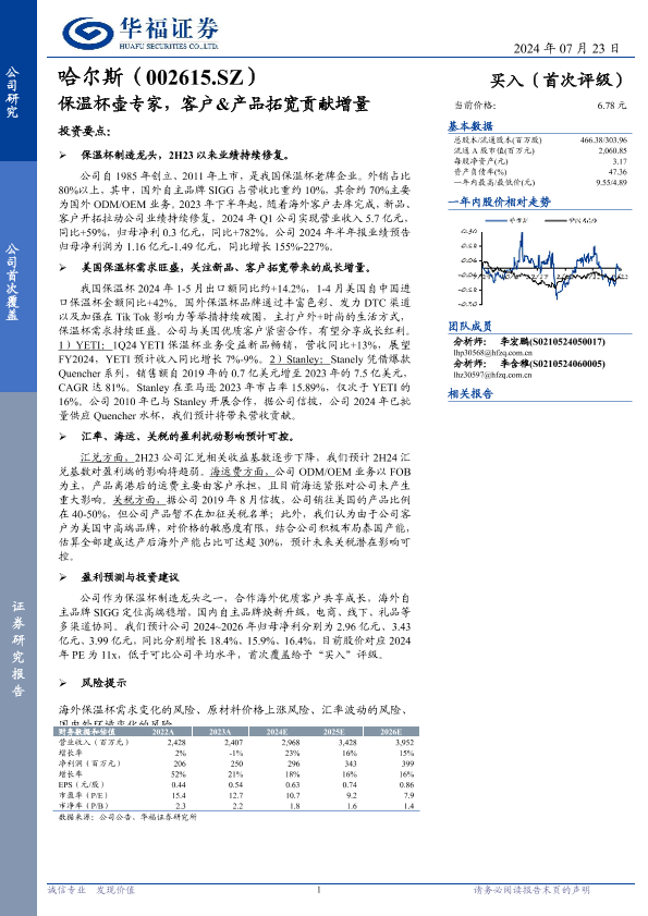 【华福证券】【20240723】哈尔斯(002615)保温杯壶专家,客户&产品拓宽贡献增量-15页