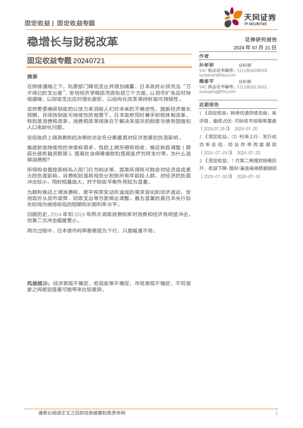 【天风证券】【20240721】固定收益专题:稳增长与财税改革-12页