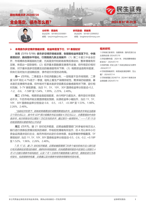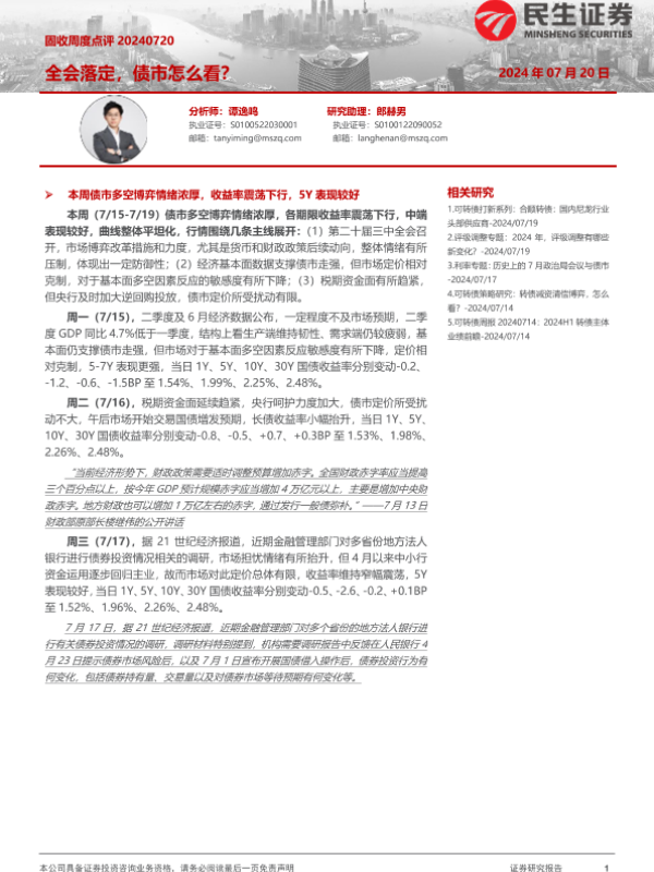 【民生证券】【20240720】固收点评:全会落定,债市怎么看?-11页