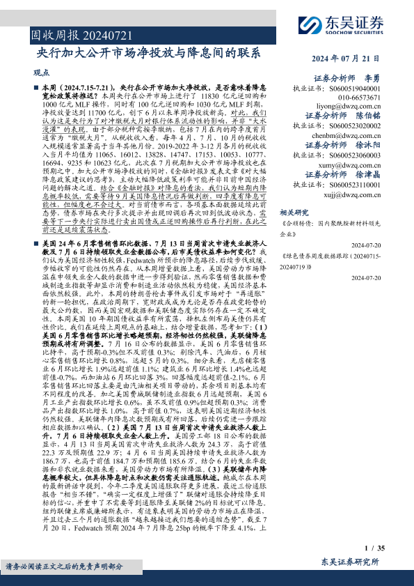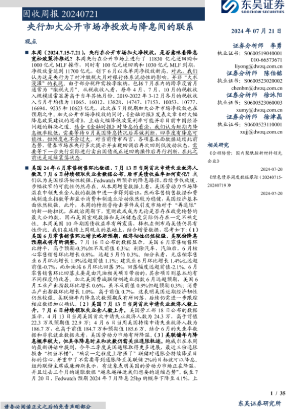 【东吴证券】【20240721】固收:央行加大公开市场净投放与降息间的联系-35页
