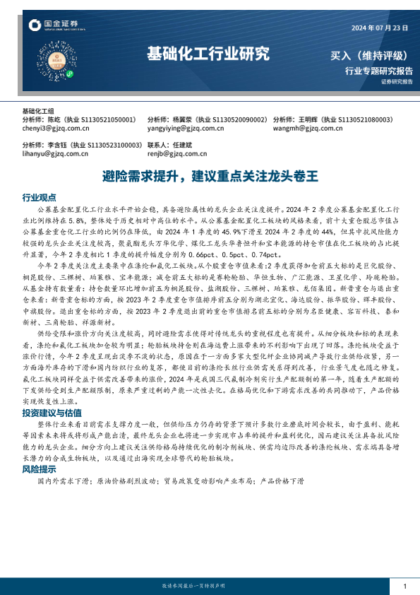 【国金证券】【20240723】基础化工行业专题研究报告:避险需求提升,建议重点关注龙头卷王-17页