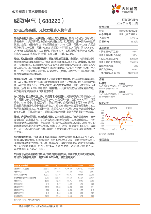 【天风证券】【20240721】威腾电气(688226)配电出海亮眼,光储发展步入快车道-29页