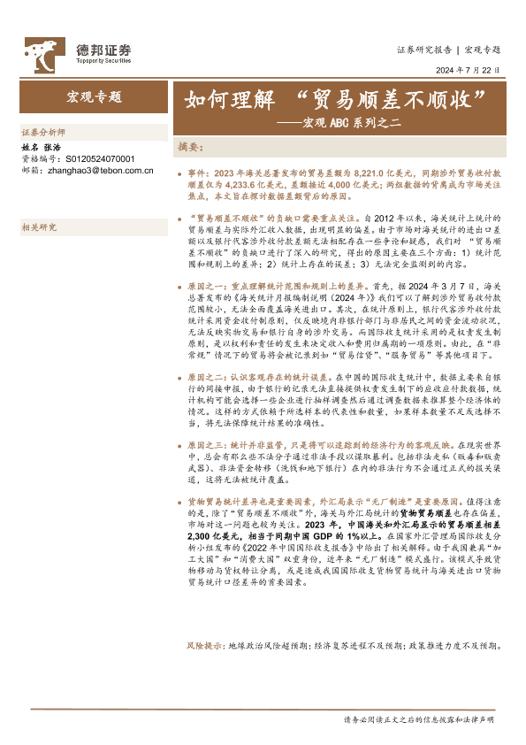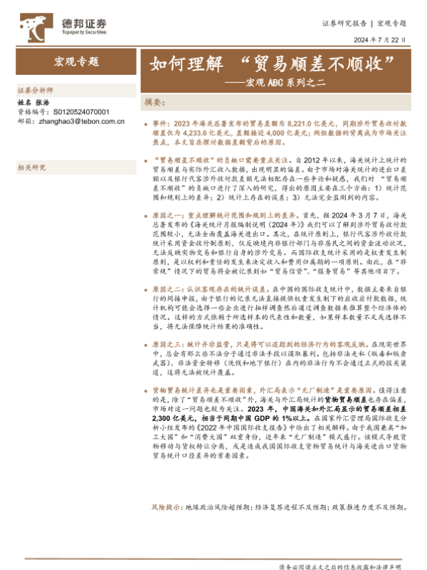 【德邦证券】【20240722】如何理解“贸易顺差不顺收”-14页