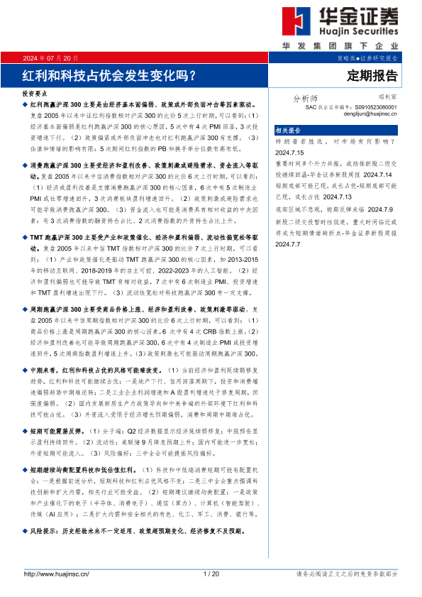 【华金证券】【20240720】定期报告:红利和科技占优会发生变化吗?-20页