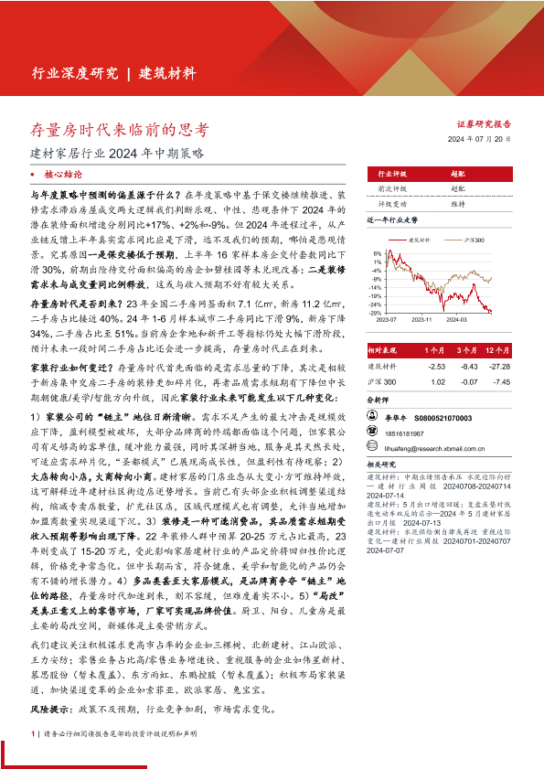 【西部证券】【20240720】建材家居行业2024年中期策略:存量房时代来临前的思考-19页
