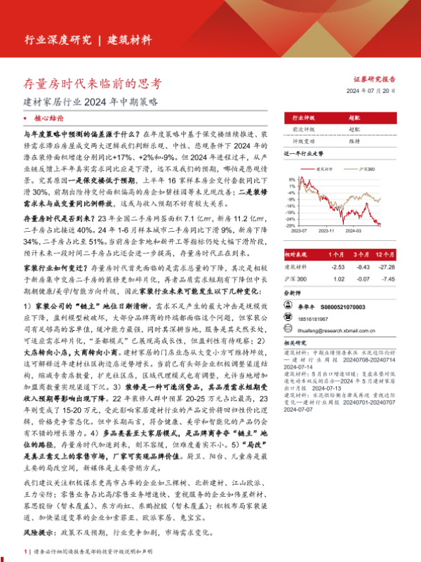 存量房时代 市场预测 投资分析 行业策略 建材家居