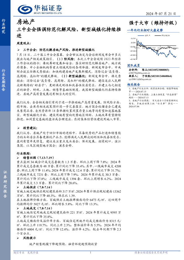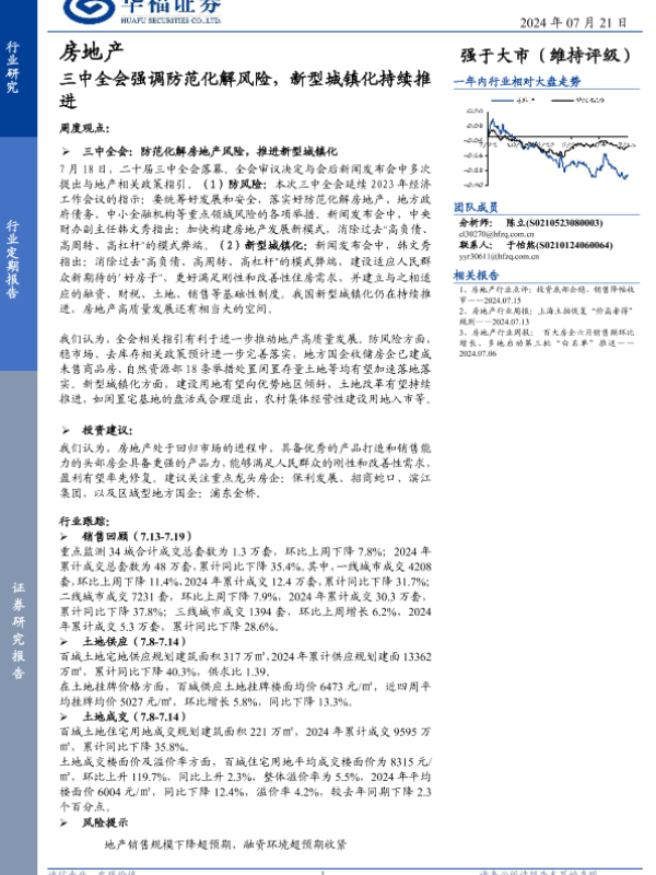 【华福证券】【20240721】房地产行业定期报告:三中全会强调防范化解风险,新型城镇化持续推进-12页