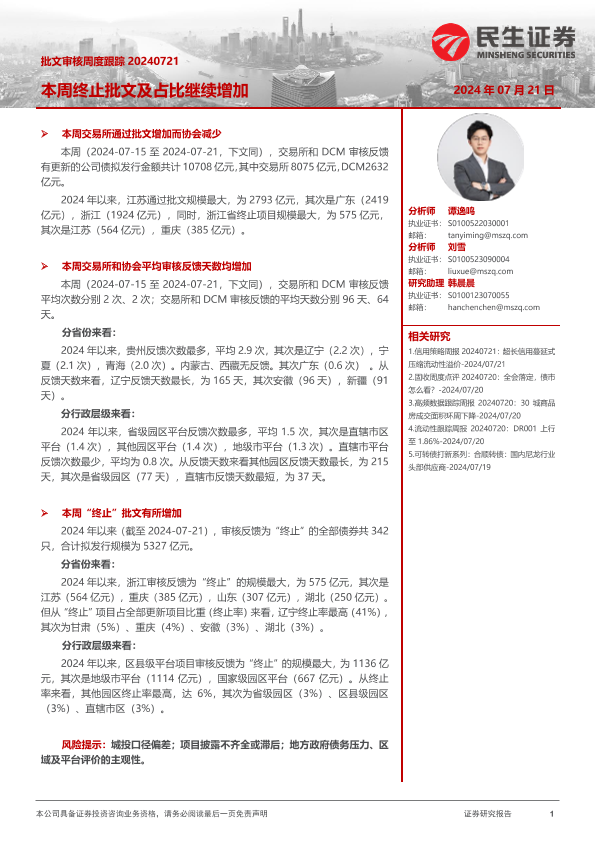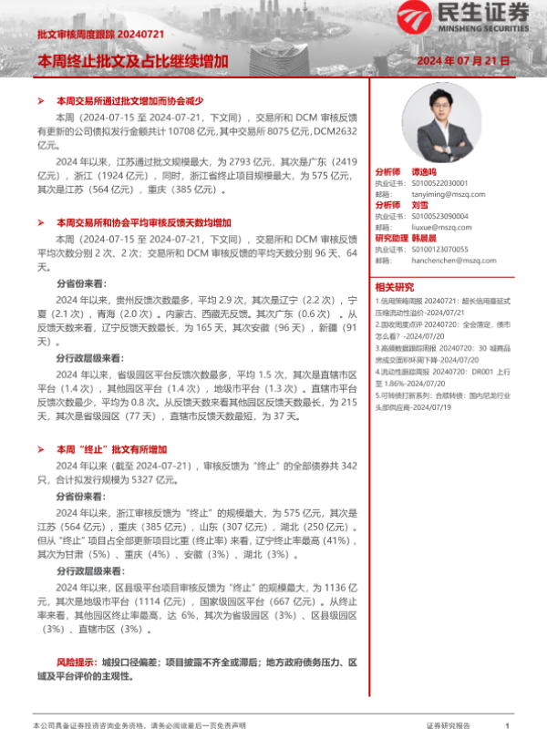 【民生证券】【20240721】批文审核跟踪:终止批文及占比继续增加-13页