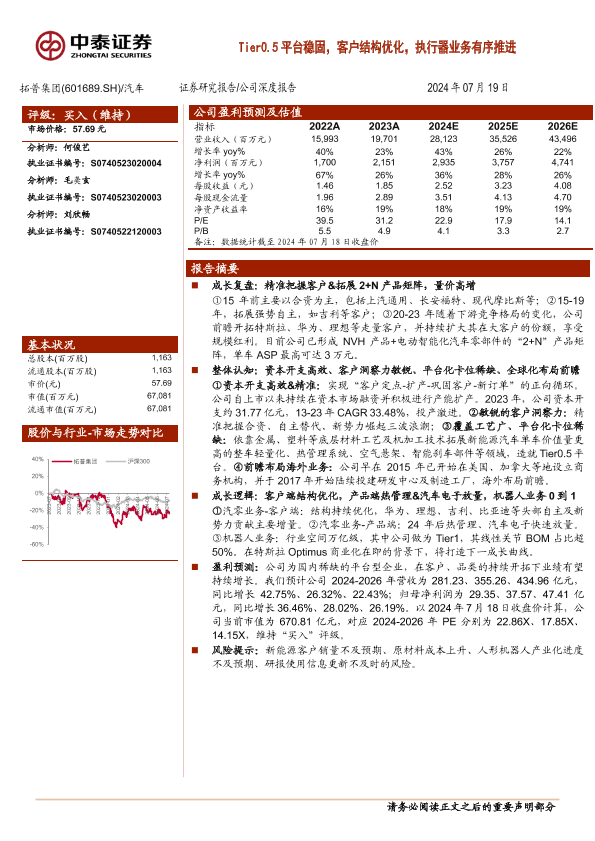 【中泰证券】【20240719】拓普集团(601689)Tier0.5平台稳固,客户结构优化,执行器业务有序推进-27页