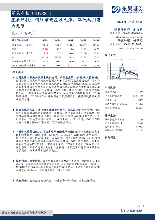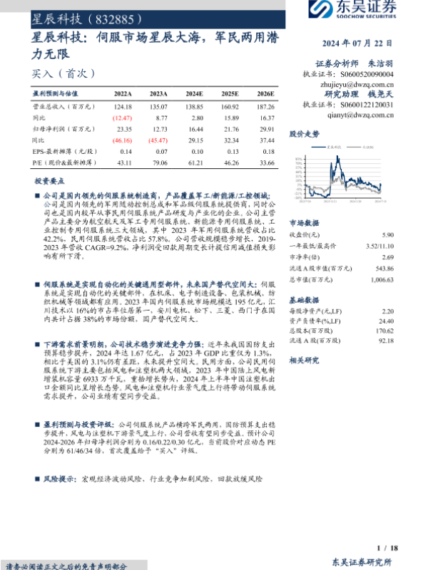 【东吴证券】【20240722】星辰科技(832885)伺服市场星辰大海,军民两用潜力无限-18页