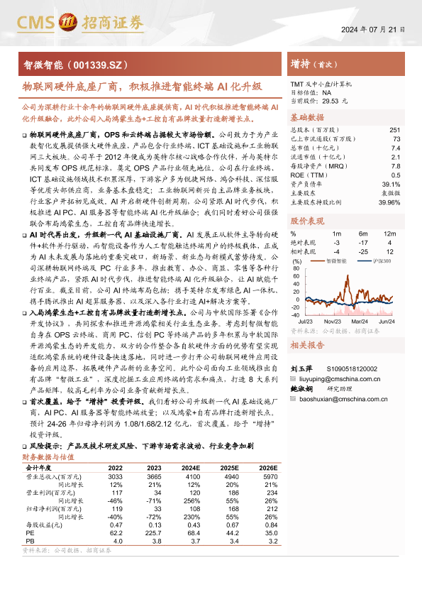 【海通证券】【20240721】智微智能(001339)物联网硬件底座厂商,积极推进智能终端AI化升级-29页