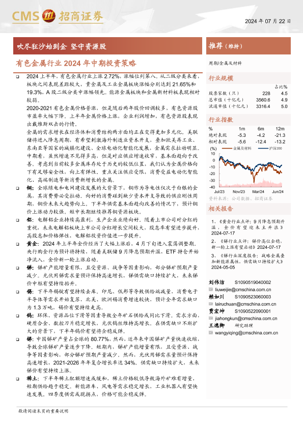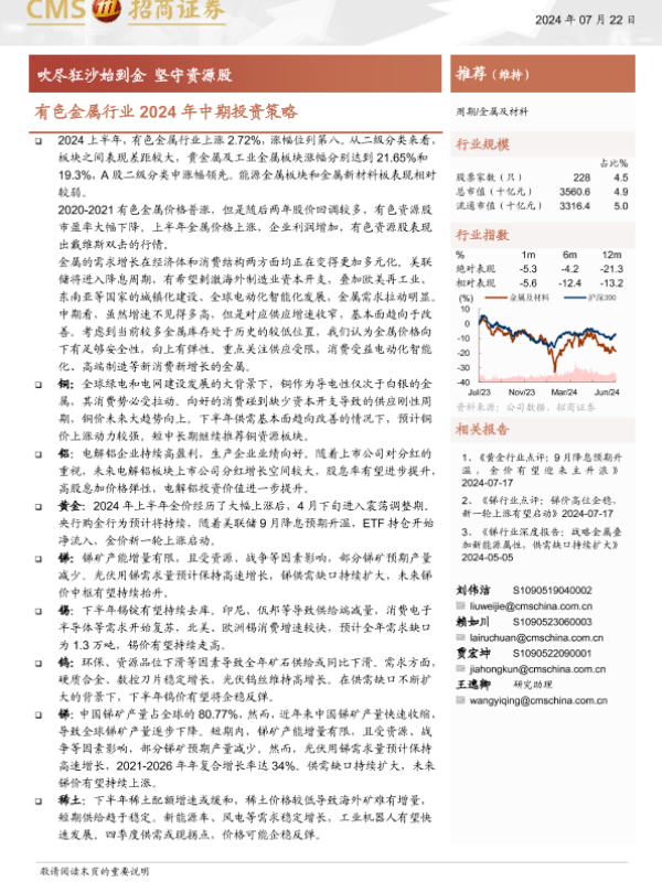 【海通证券】【20240722】有色金属行业2024年中期投资策略:吹尽狂沙始到金,坚守资源股-54页