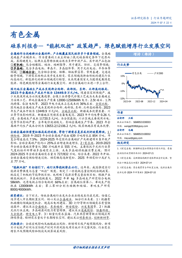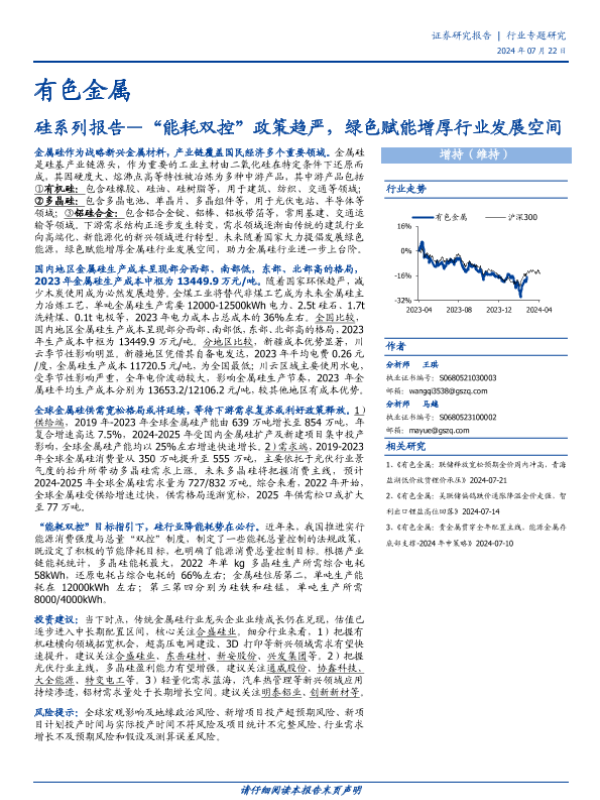 有色金属 硅产业链 绿色发展 能耗双控 行业分析