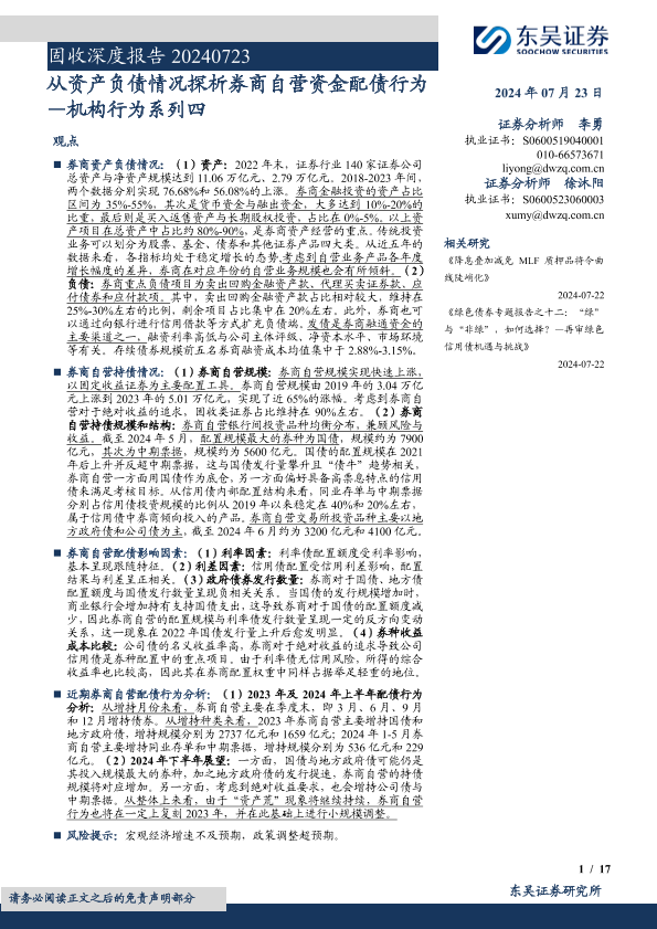 【东吴证券】【20240723】从资产负债情况探析券商自营资金配债行为——机构行为系列四-17页