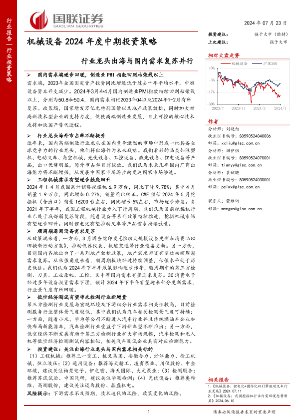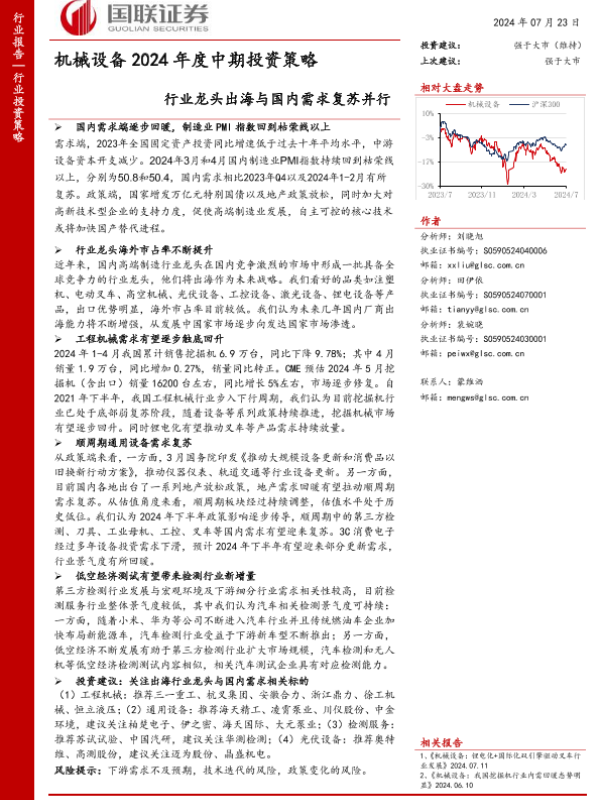 【国联证券】【20240723】机械设备行业2024年度中期投资策略:行业龙头出海与国内需求复苏并行-56页