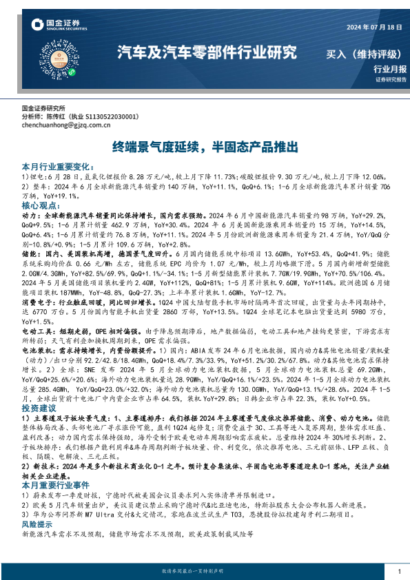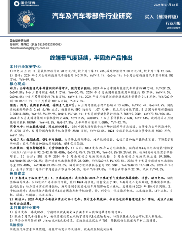 【国金证券】【20240718】汽车及汽车零部件行业月报:终端景气度延续,半固态产品推出-21页