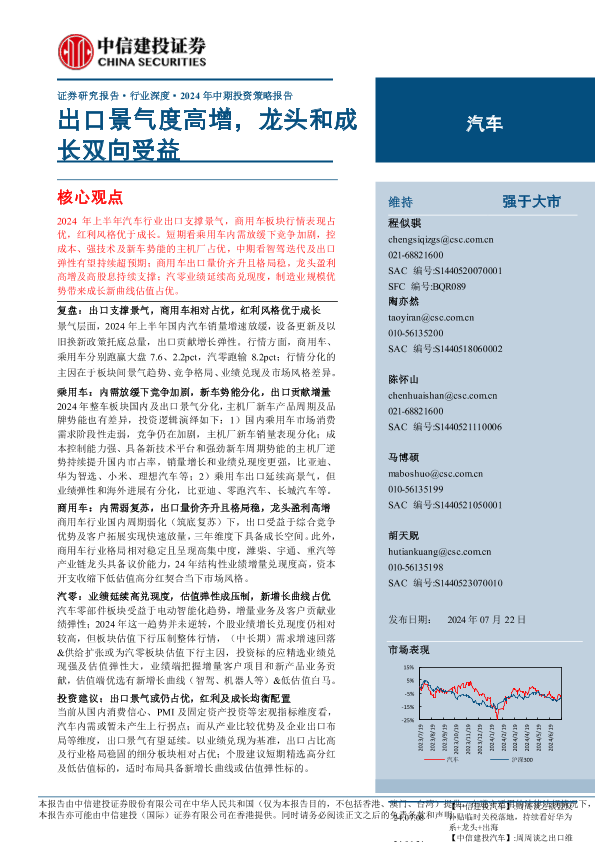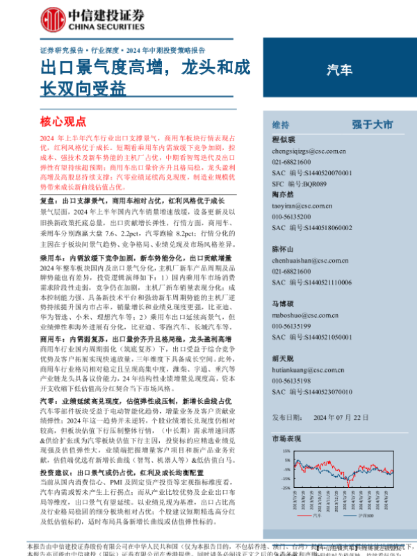 【中信建投证券】【20240722】汽车行业2024年中期策略报告:出口景气度高增,龙头和成长双向受益-48页