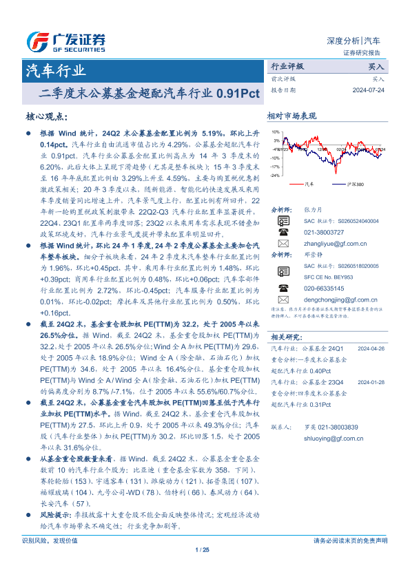 【广发证券】【20240724】汽车行业:二季度末公募基金超配汽车行业0.91Pct-25页