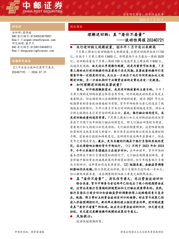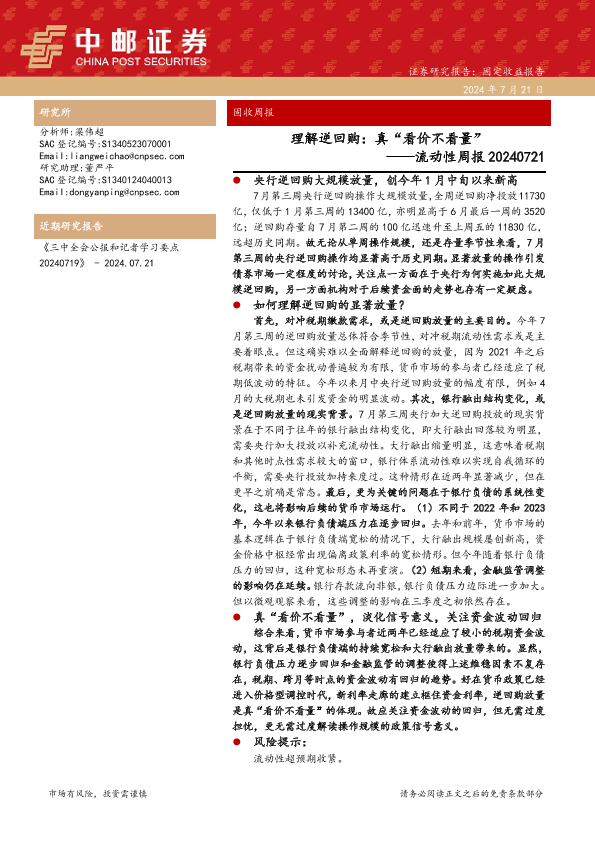 【中邮证券】【20240721】理解逆回购:真“看价不看量”——流动性周报 20240721-24页