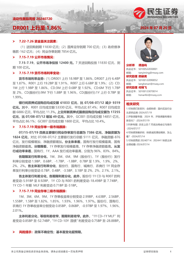 【民生证券】【20240720】流动性跟踪:DR001上行至1.86%-17页