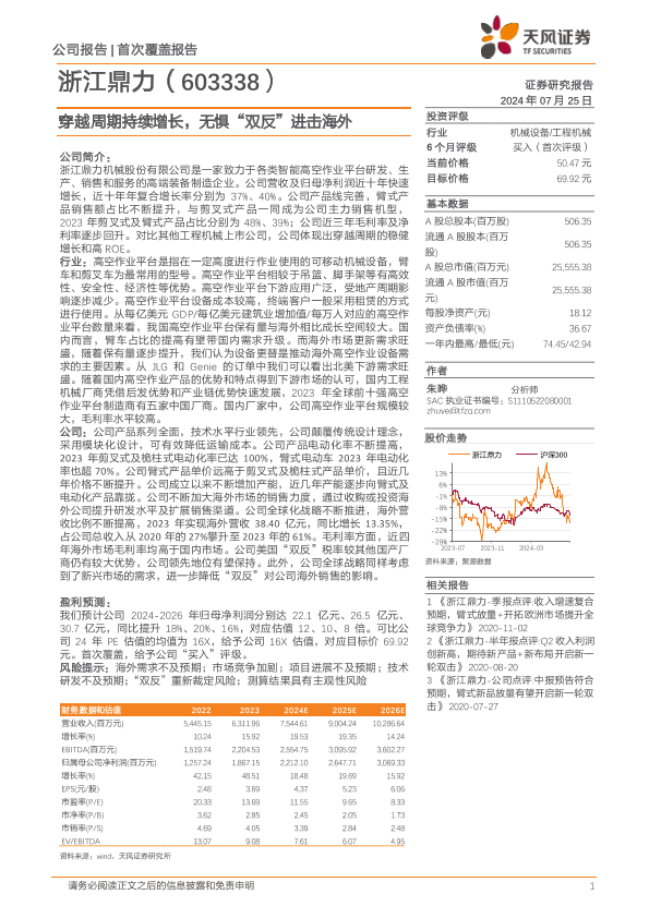 【天风证券】【20240725】浙江鼎力(603338)穿越周期持续增长,无惧“双反”进击海外-23页