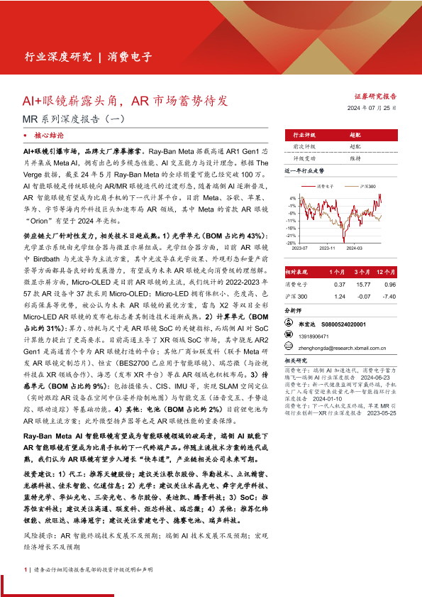 AI智能眼镜 AR眼镜 市场分析 投资建议 消费电子