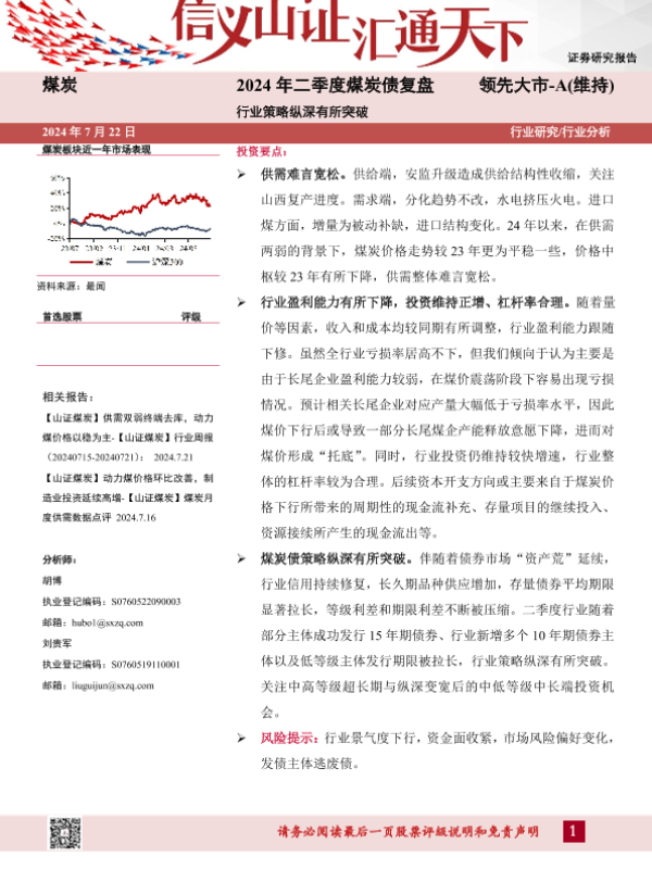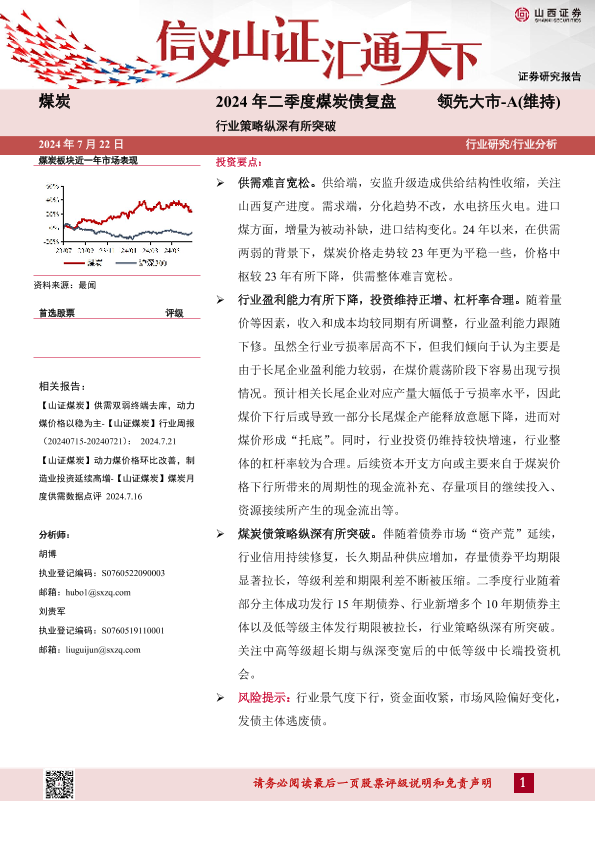 【山西证券】【20240722】煤炭行业2024年二季度煤炭债复盘:行业策略纵深有所突破-22页