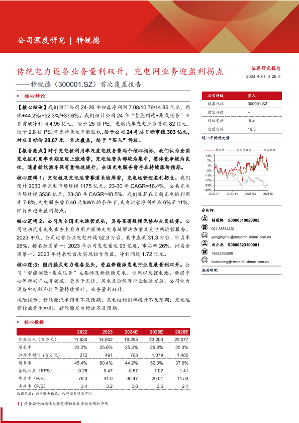 【西部证券】【20240725】特锐德(300001)首次覆盖报告:传统电力设备业务量利双升,充电网业务迎盈利拐点-44页